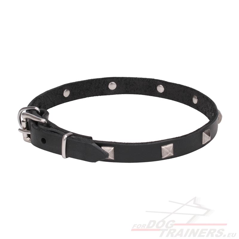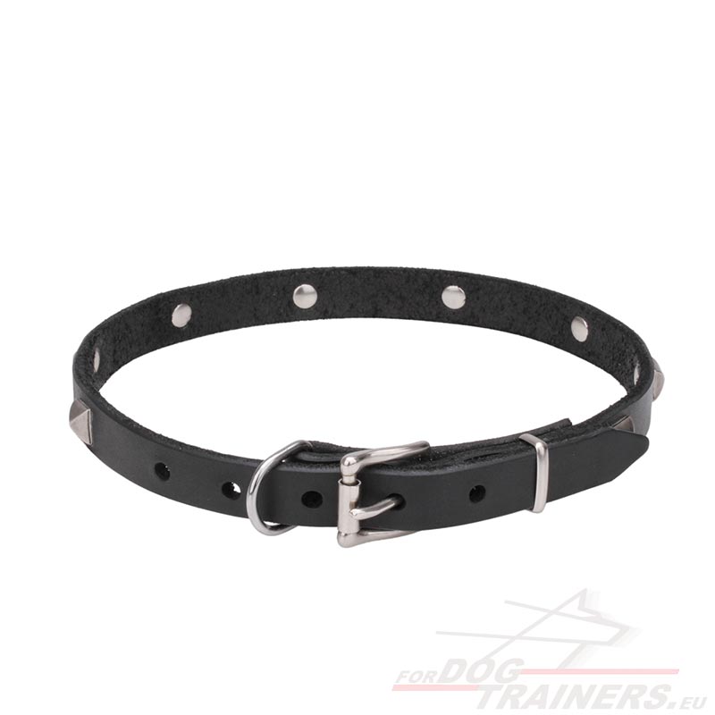 Collare stretto in pelle naturale "A La Mode"con borchie cromate per cane